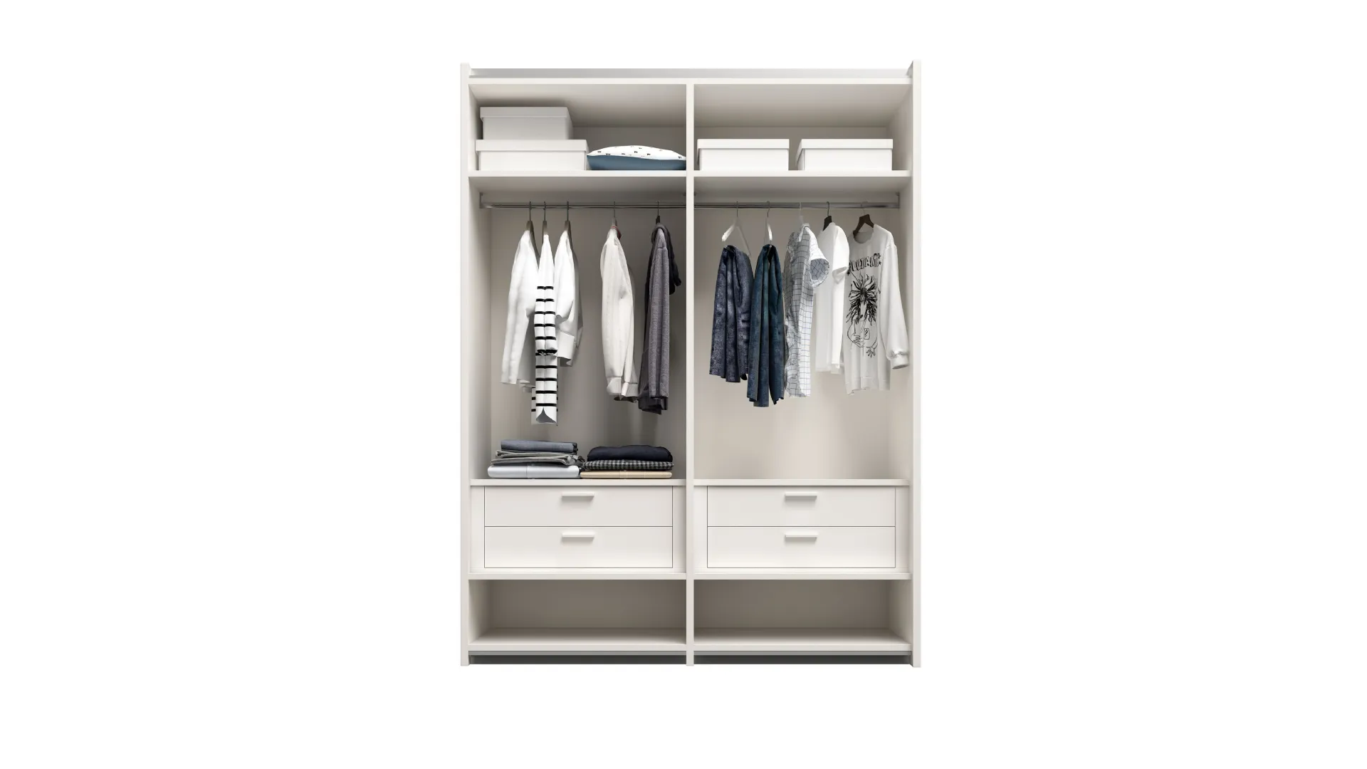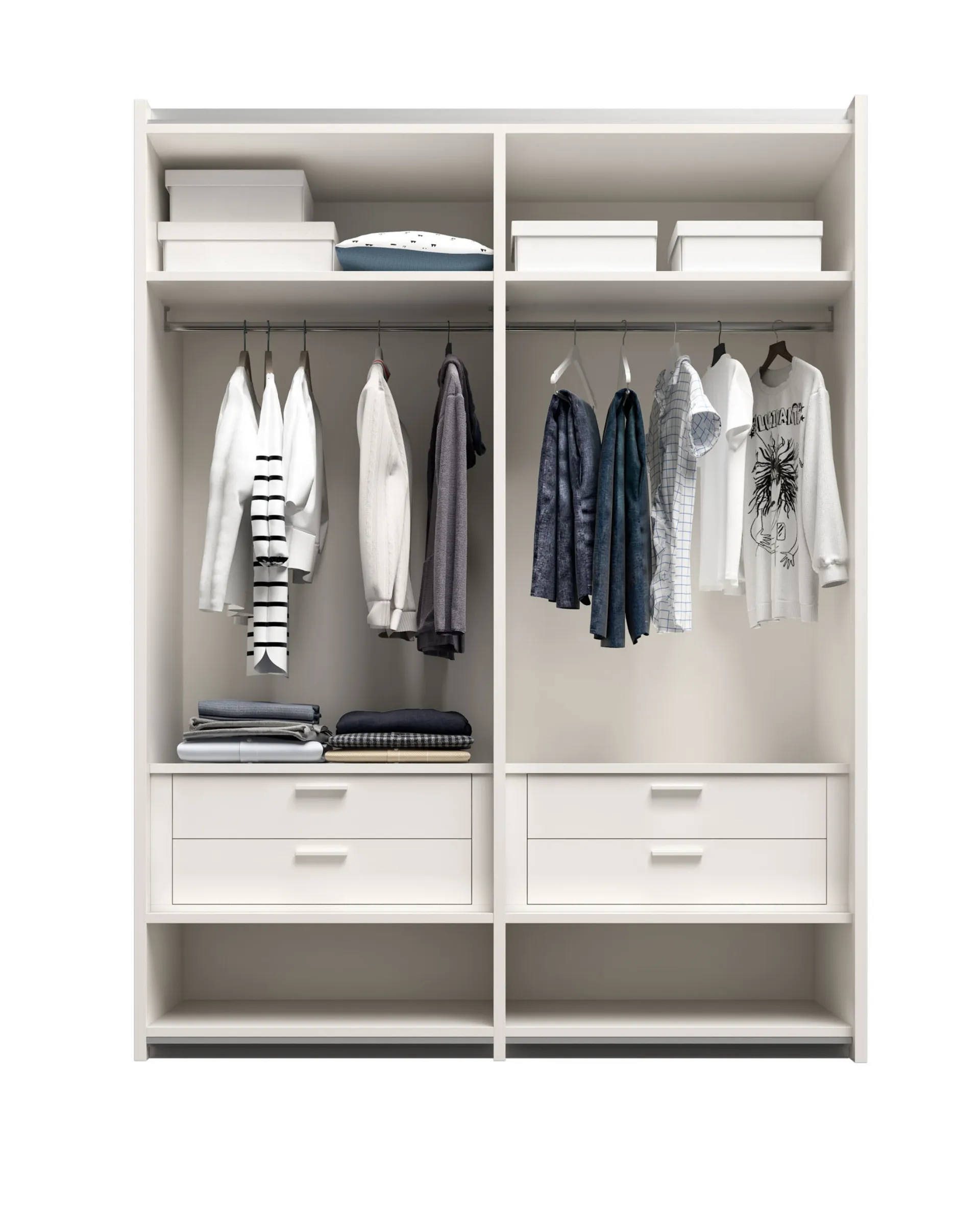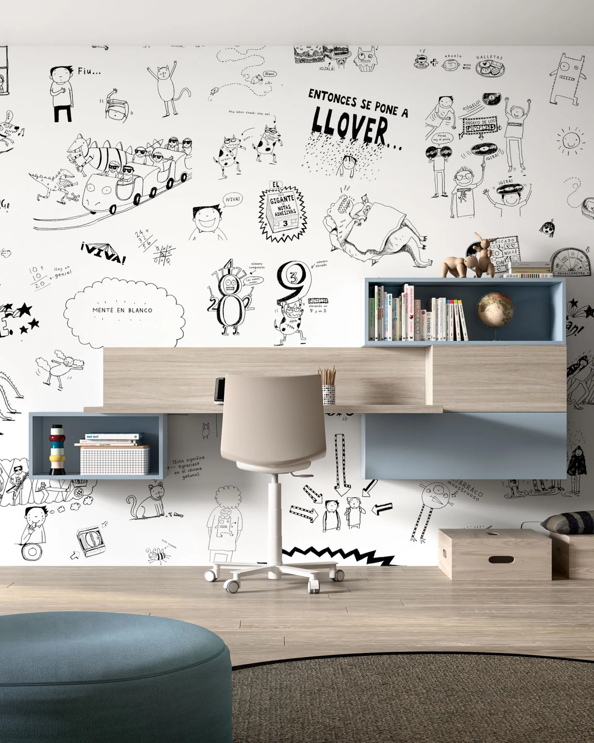 Bedroom with bed including slatted base, wardrobe with two doors in matt lacquer equipped with four internal drawers and suspended wooden desk: an original desk, out of the usual schemes, an element that can be removed; design to your taste with cheerful and colorful cubes. Mattress and desk chair excluded, composition è available to order in 50/60 working days, with customizable material finishes. Our offer è of € 2,050.00. We deliver our furniture throughout Europe, assembly è on request. For more info write to us at: info@mottesmobili.com