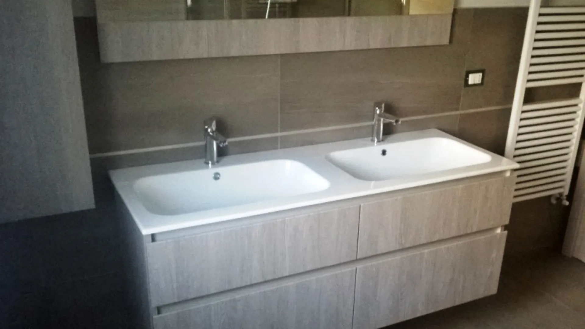 This bathroom has been created with a double composition, to give the bathroom area a bit of personality