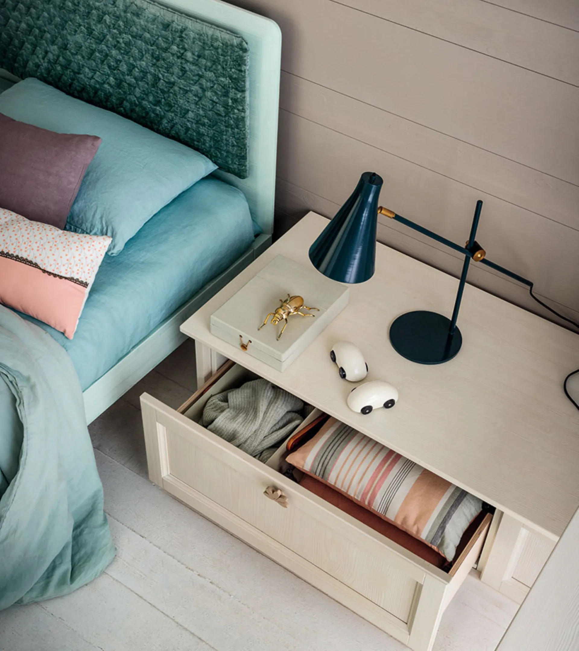 Home - Accomplishments - Children's rooms - Two-colored bedroom with bed with padded headboard
