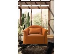 Armchair with a wide and deep seat, Caroline explores the surrounding environment with creativity, interrupting the linearity of the horizontal plane with decisive and cheerful lateral folds, made even more evident by the chromatic opposition of the upholstery. The apex of the backrest descends calmly to the edges of the lateral armrests, guaranteeing a enveloping and reassuring structural uniqueness.