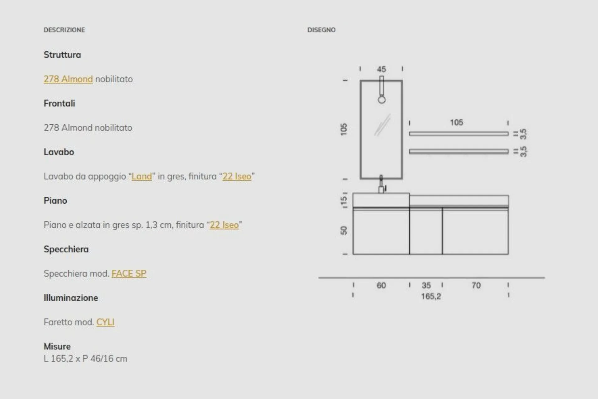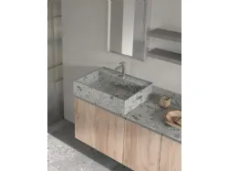 Bathroom model BIK composition 06 with laminate fronts and porcelain stoneware top with inset bathtub in the same finish. Composition of 65.7 cm. Possibility of personalizing it with measurements and finishes also in lacquer or Oak wood.