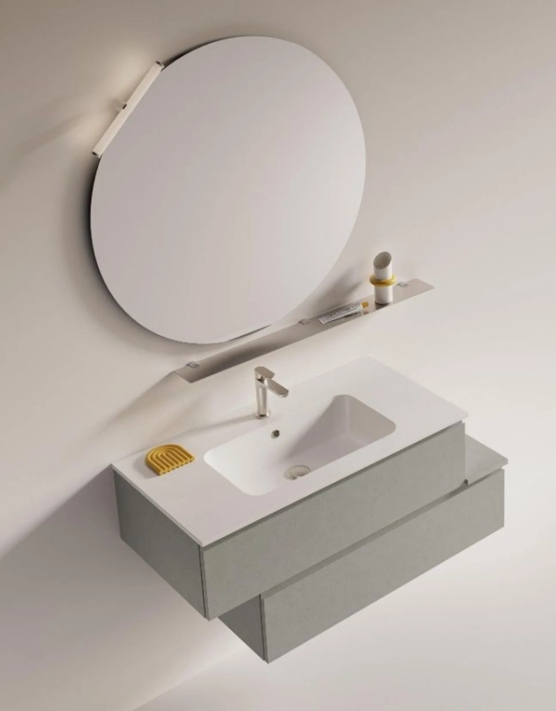 Every person has their own passions, their own identity, their own uniqueness. This uniqueness is a thin line, made of experience, tastes, and desires, which makes each individual different. In the search for an environment that reflects every peculiarity, the bathroom becomes a personal space, where functionality and style blend together. The MINI-MO program was created to satisfy this desire for identity, thanks to a minimal collection of monoblocs for bathroom furnishing. The door from the B-go collection with a groove was chosen as a reference for the MINI-MO program, but doors from the B201, BIK, or IPE collections can also be used. These collections have the same finishes, the opening system is what changes.