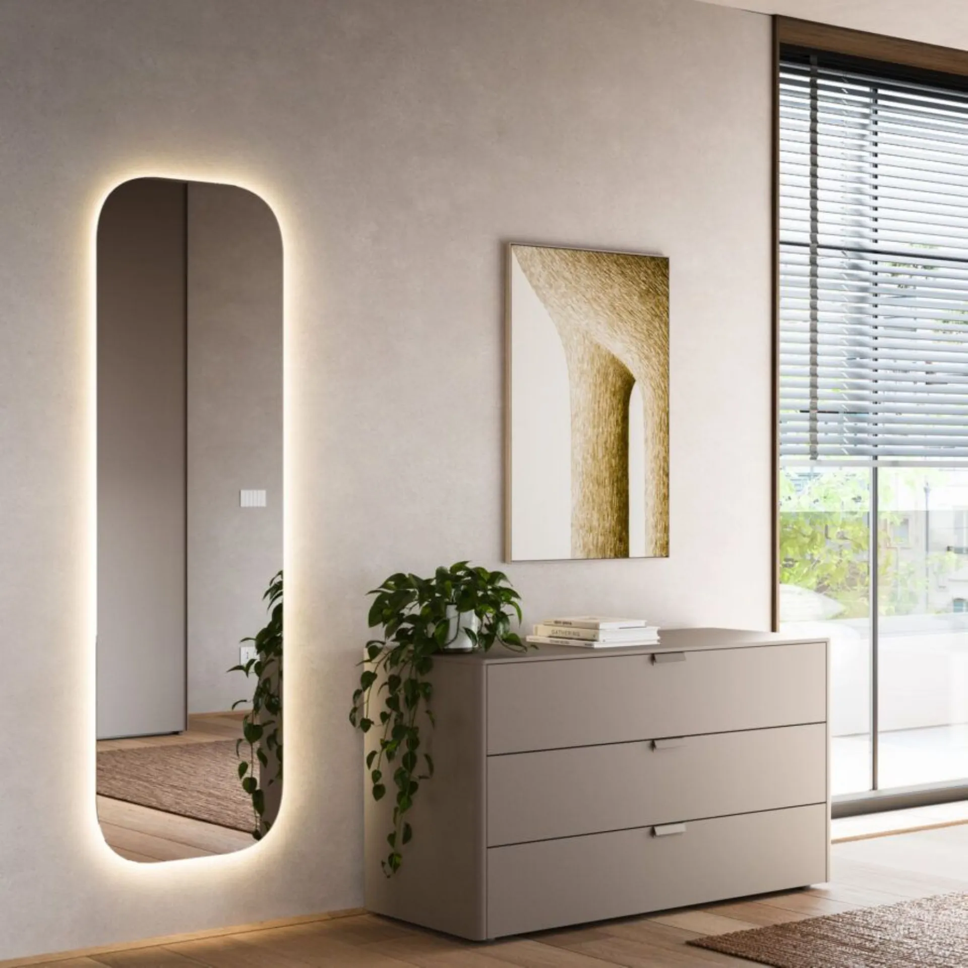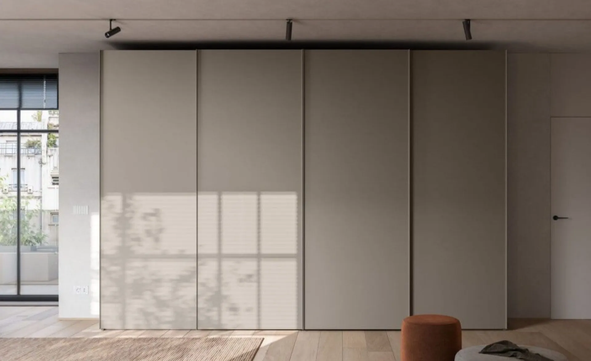 Orme's new night collections and wardrobes interpret with wisdom, creativity, and tailoring a style of furnishing and living, in harmony between contemporary and modern. Modular systems, modular systems, to be tailored to the space. Custom solutions, a wide range of colors and finishes, refined and selected, special processing to ensure impeccable results, in the name of customer satisfaction and respect for the environment. Loli upholstered bed with Splendor SP11 and Arena fabric bed frame. Chiara group with Dola handle in Platinum and backlit Soul 21 mirror. Trio sliding wardrobe in Platinum. Internal structure in Cotton l.372.5 h.258. Delivery included in the price, 40 working days. Our offer for this double bedroom is €4,800.00 including VAT and transport, excluding bed, mattress, and assembly. For more information contact us via email or visit our showroom.
