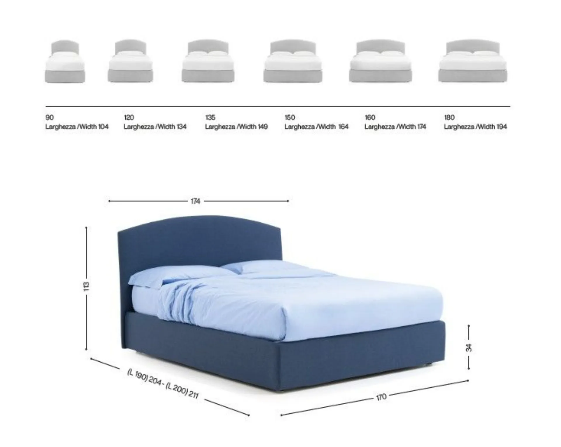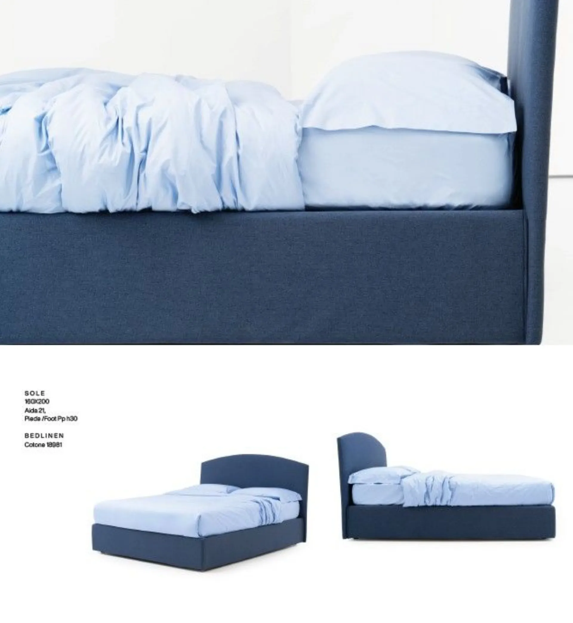 The SOLE model bed with storage, Mottes mobili offers it with a slatted base of 160x190 or 160x200 at €950.00 or with a slatted base of 180x200 at €1,100.00. For a wooden leg h.11 in 4 colors a surcharge of €30.00. Prices include VAT and delivery and delivery times of approximately 40 working days (no assembly).