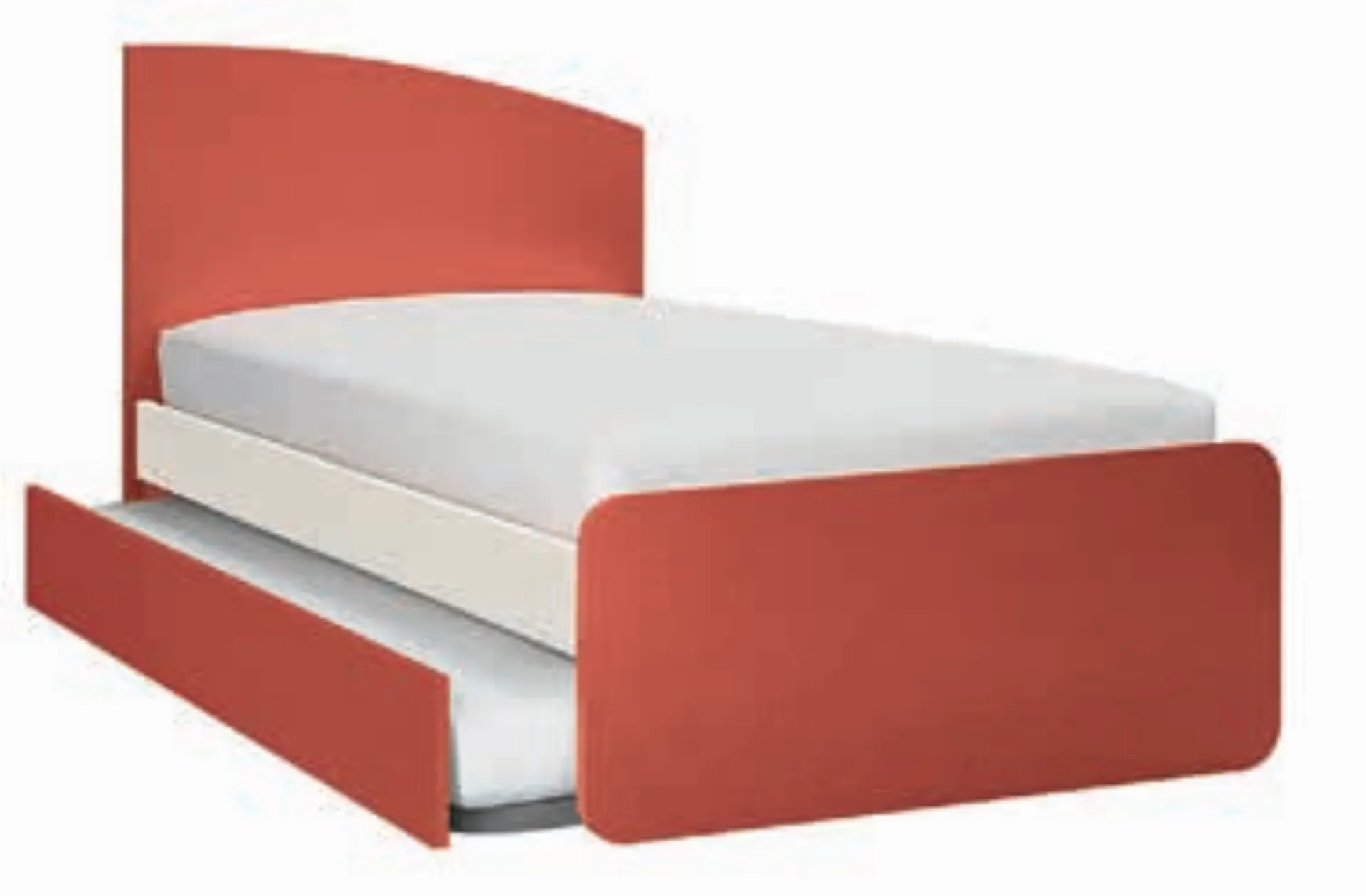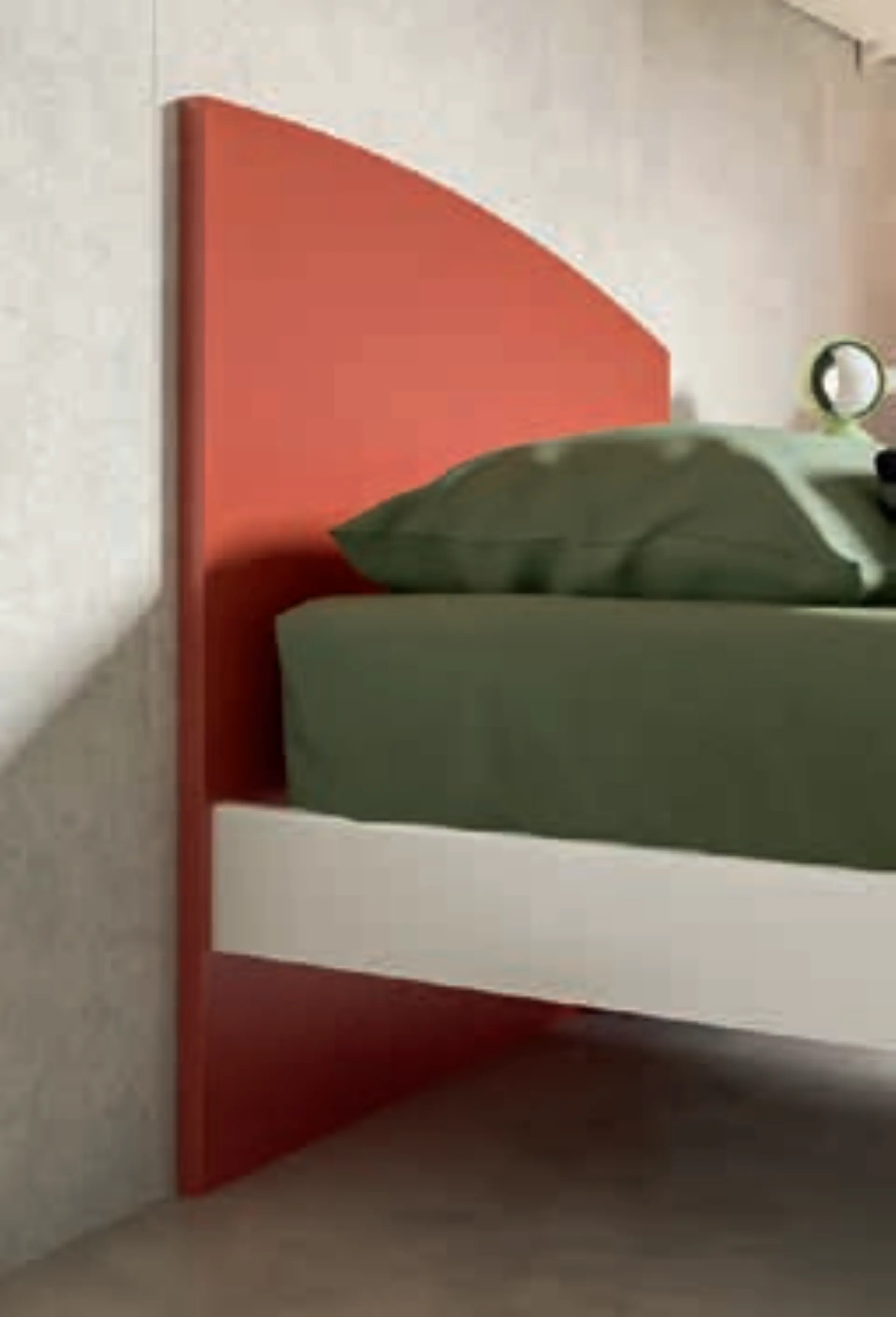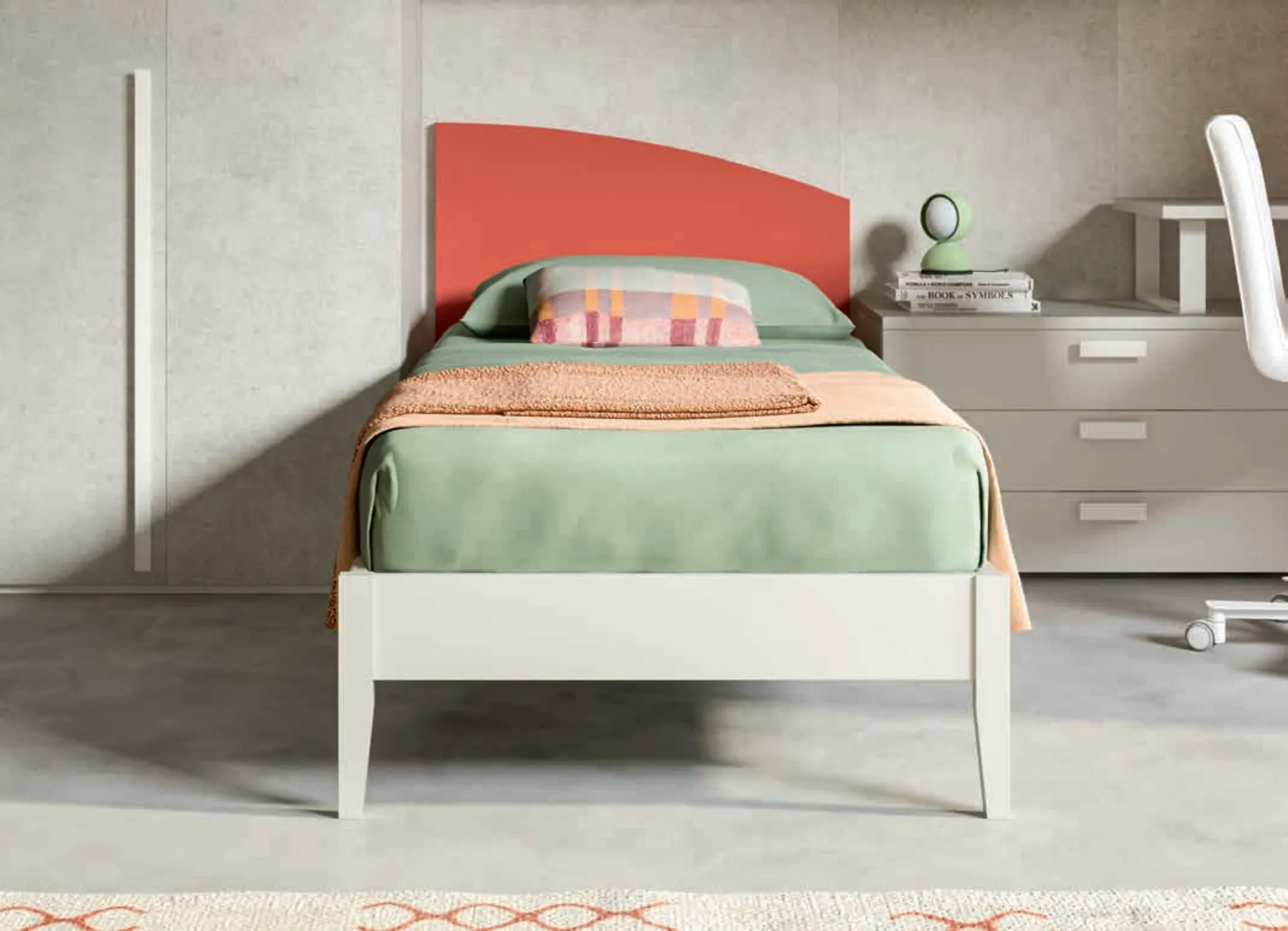Single bed with shaped headboard that recalls the shape of a sail, customizable finishes 205x90