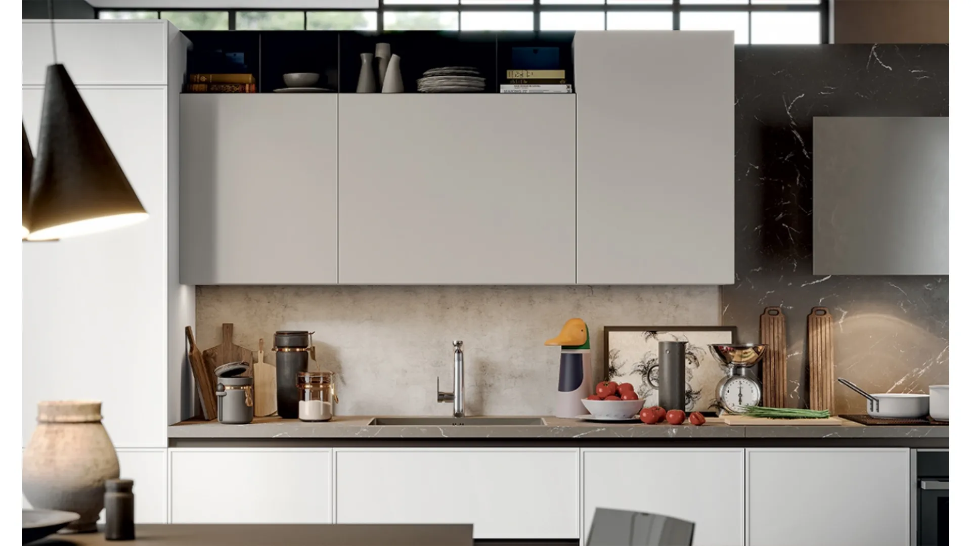 Aria redefines standards and proposes a new kitchen concept, introducing new compositional elements that make it unique, beautiful, functional, and versatile. Air is distinguished mainly by the special 24 cm high basamneto, this technical and stylistic device gives the kitchen a sober, elegant and refined style.