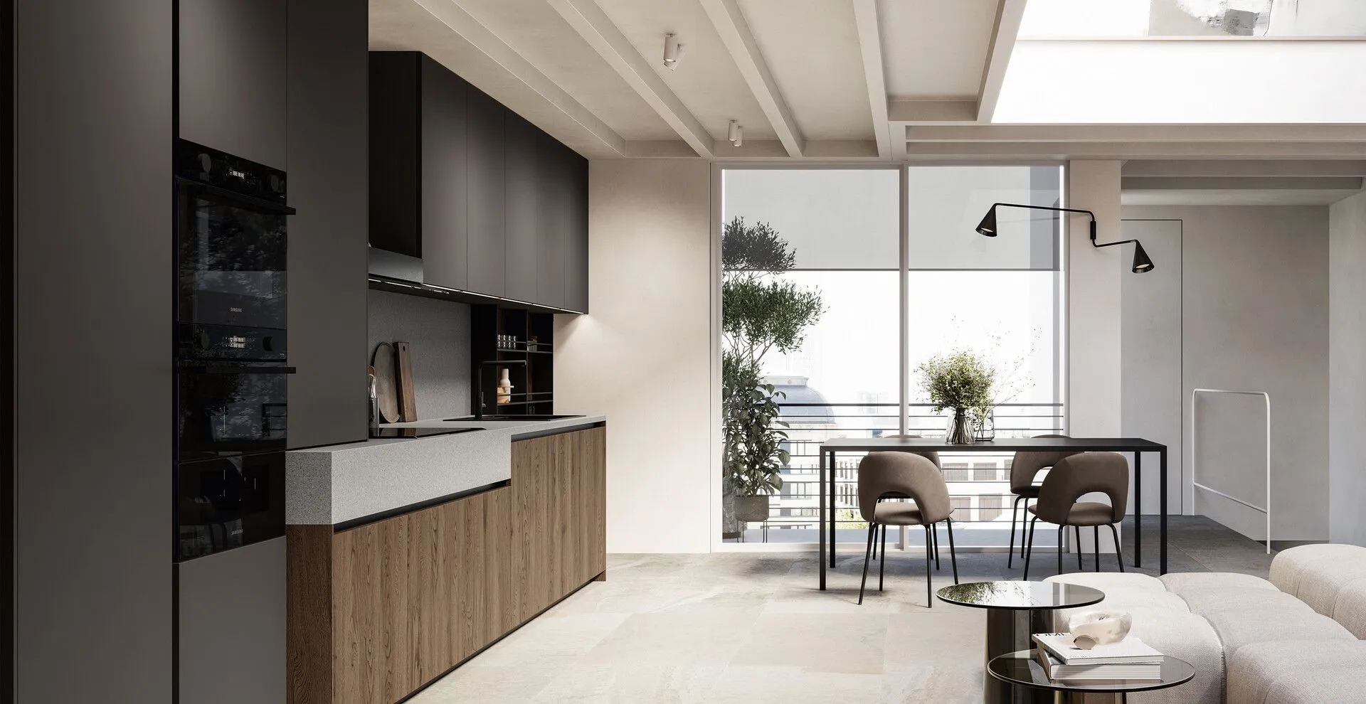 The smooth wooden door can have a groove opening system, an invisible push-pull, or various handles, including the refined Brera, designed exclusively for Arredo3, or, in the case of columns, the external K2 handle, another exclusive. The model has the fresh style of open-pore colorful lacquers or the taste of wood essence in different finishes. Some have a distinctly vintage flavor or, in the beam version, are part of the eco-sustainable Gaia setup. The apex of sophistication is reached by the Asia millerighe door, in different colors, carefully worked with technical precision in a succession of vertical millings with a three-dimensional striped effect. Asia is perfect when paired with snack tops and supports, bookcases, and equipped bridges from the Tuttotondo and Arco collections, exclusive to Arredo3.