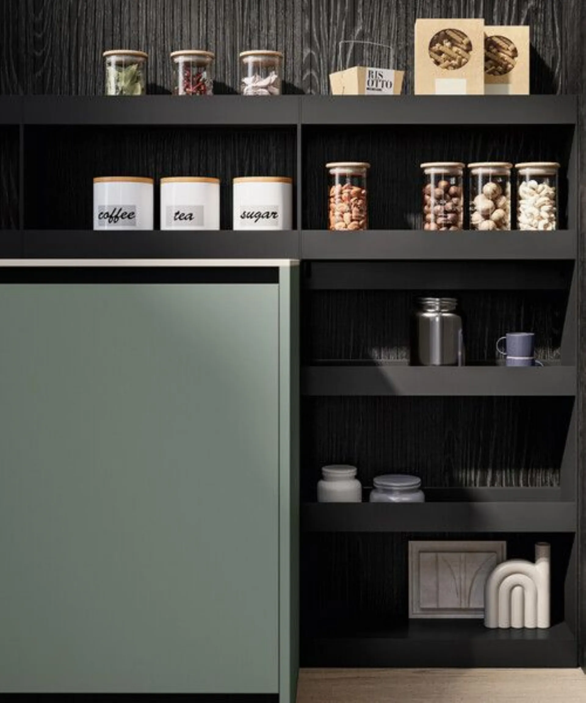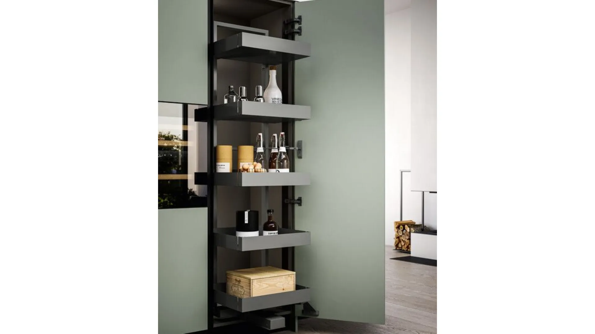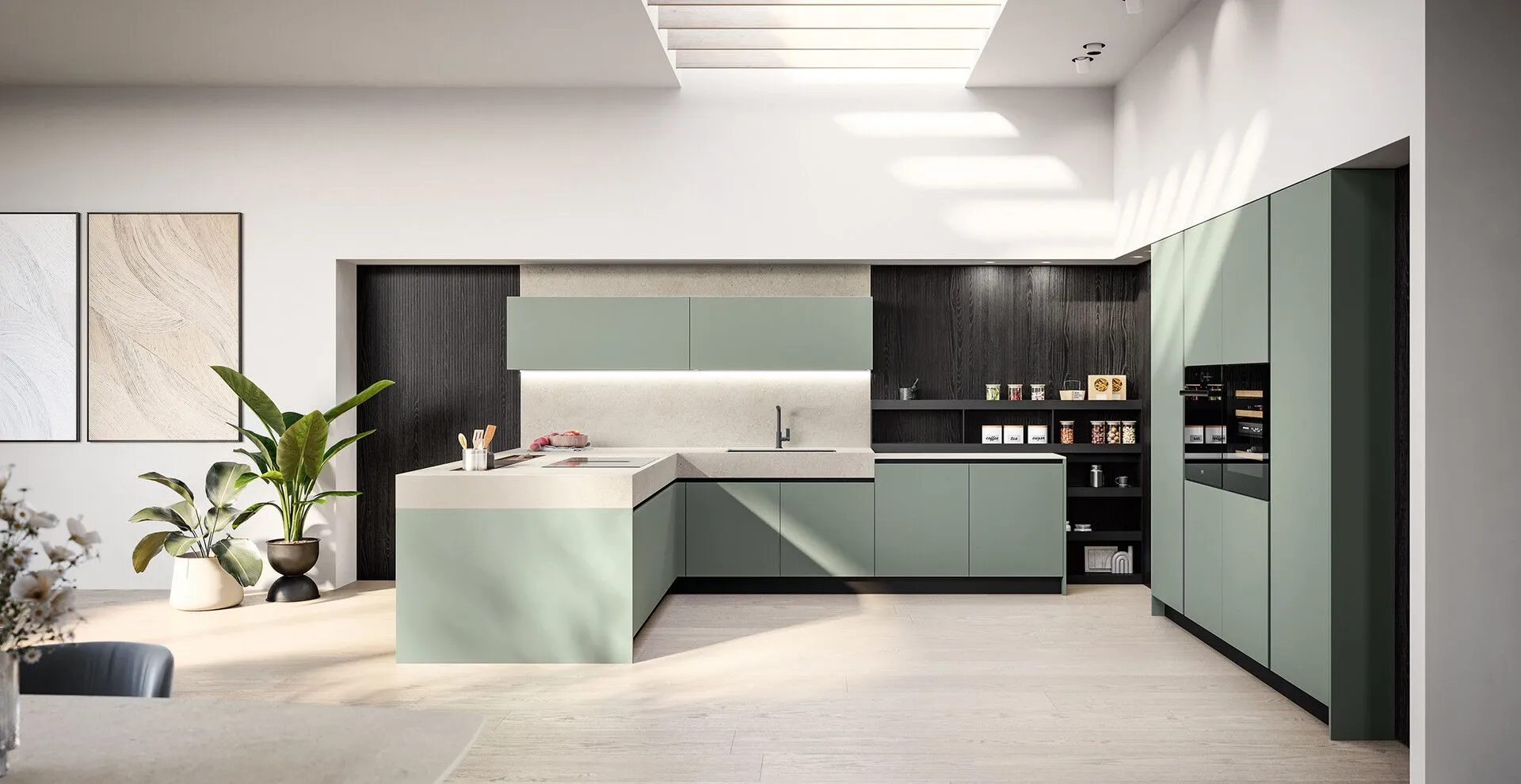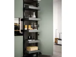 Three material proposals for Cloe. The first, UV lacquered treated with ultraviolet lamps (UV) to give a good resistance and therefore durability to the material. They are elegantly shiny to make every environment bright. The second choice, of superior quality, is that of UV excimer lacquers. Through innovative technology, they offer extremely opaque surfaces and even more resistant to scratches, abrasions, and chemical agents. They have a soft touch, are fingerprint resistant, easy to clean, and contain silver ions with antiseptic properties to prevent the proliferation of bacteria. For Cloe, finally, also laminates of quality in sober colors or with resin effects with a metropolitan taste or wood effects, always pleasant in the kitchen.