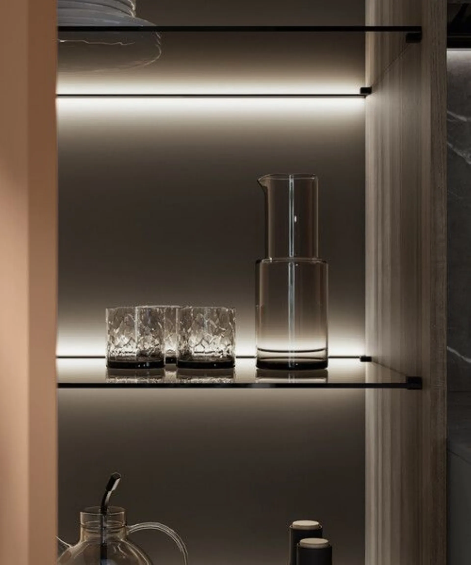 With Cloe, Arredo3 reinterprets modern kitchen design and makes it accessible and functional with many options to express various design interpretations. The integration of the "gola" opening and different types of handles, finishes in UV lacquer and laminates for unique cabinet doors are some of the features of Cloe. The design of Cloe is a privileged gateway into the world of design, where even the choice of countertops, work surfaces, and accessories like tables and chairs are specially selected by Arredo3 interior designers. Cloe also offers coordinated living solutions for a perfect result, even in small spaces or open-plan areas. For those who want a young, compact, dynamic kitchen.