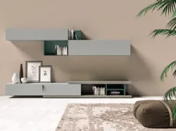 This type of wall unit in the matt lacquered finish appears appropriate for the stays of modern homes. With the wall units, Orme presents multifunctional modular elements, which accommodate books, separate the space and are a precious part of embellishment. Orme designs a wide range of wall units for stays, mixing technology and aesthetic appearance, to propose modern style wall units that are capable of finding a solution to life's expectations but in addition to satisfying your style. With this type of matt lacquered wall units you will be able to design colors and finishes that più they satisfy you. The matt lacquered wall units by Orme, thanks to their classy mood, furnish the best contemporary rooms as well asé più classics. Composition with ground base and wall unit of Length 300cm, Height 167cm, Depthà base 42cm and depthà wall unit 35cm. Item made to order with material finishes that can be customized on request, selectable from the sample in the image. Our offer starts at € 2.100,00 with finishes of the materials in ash and matt lacquer.
