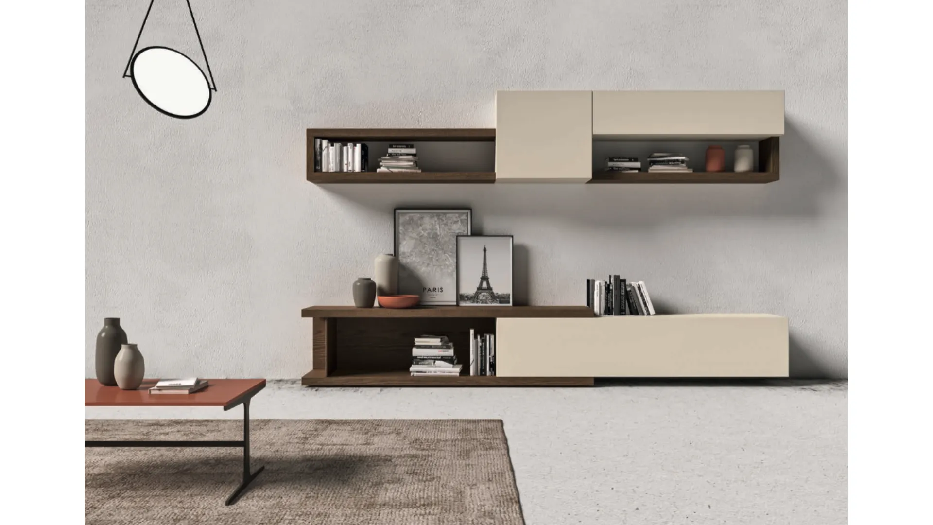 Each modern style wall unit answer to your needs; guarantees durability, an essential value for Orme. Let your imagination express itself by composing the elements of this laminate proposal by Orme, to be daring, but with class! Orme makes available various compositions that can be made with the varied supply of wall units for the living room. The type of modern-style stays è designed by Orme to combine elegance, thanks to the clean structure, and function. Thanks to the wide range of shadesà and finishes available for this type of wall units, it will be possible to have a fashionable composition, or più classical. In today's living rooms we ask for multifunctional compositions that know how to perfectly organize the space, such as the laminate type by Orme. Modern composition with ground base and wall unit of length 300cm, maximum height 180cm, depthà base 42cm and depthà wall unit 35cm. Item made to order with material finishes that can be customized on request, selectable from the sample in the image. Our offer starts from € 2.100,00 with finishes of the materials in ash or matt lacquer.