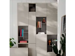 In today's living rooms, we desire multifunctional modular elements that can optimize the space, like the matte lacquered example from Orme. The example of modern style living rooms is designed by Orme to combine elegance, thanks to its clean design structure, and functionality. Thanks to the wide range of shades and finishes available for this example of bookshelves, you will have the possibility to design a trendy proposal, as well as a more traditional one. Let your creativity express itself by combining the modules of this matte lacquered product from Orme, to dare, but with taste! The special elements integrate into the living room solution and play with thinner and more elegant thicknesses, the furniture becomes lighter and blends with the surrounding environment. Modern TV unit composition with bookshelf, in platinum melamine and hemp decor finishes, with a length of 303cm, height of 224cm and depth of 35-48cm, floor bases with slim handles. Customizable composition with customizable material finishes, available in 40-50 working days, proposed at €2,300.00.
