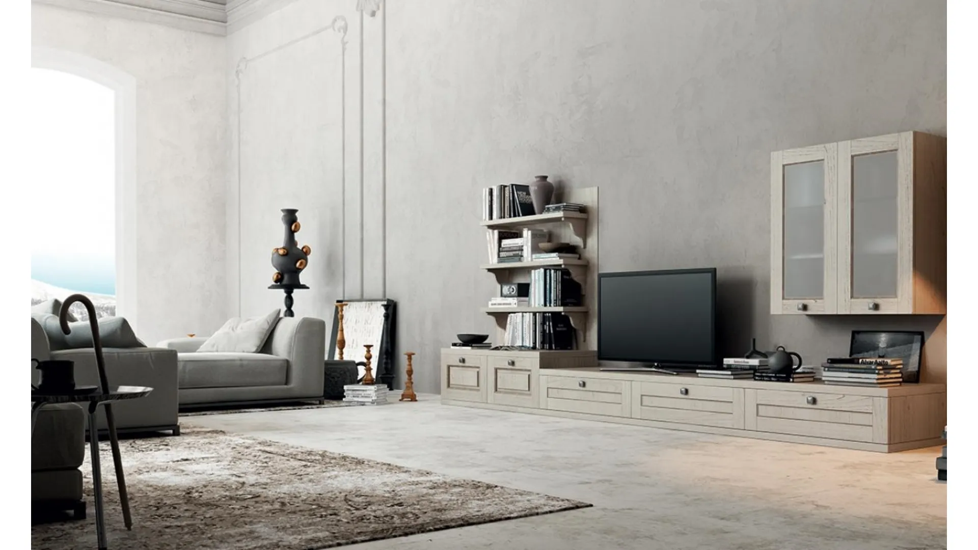With this example of a wooden TV stand you will be able  to decide colors and textures that più you prefer. Arredo3 creates a vast collection of TV stands for Stays with attention to technical innovation and aesthetic appearance, to offer classic style TV stands that are able to solve the demands of everyday life; but alsoì satisfy personal tastes. Arredo3 wooden TV stands, thanks to their modern mood, perfectly equip metropolitan or più domestic interiors; linked to tradition. With the TV stands, Arredo3 offers multifunctional compositional solutions, which house magazines, divide the space and prove to be a precious decorative element. È designed for the stays of contemporary homes this example of TV stand in wood finish. Composition Dimensions: Length 390 cm, Height 170 cm, Depth 26-agrave; 58 cm.
