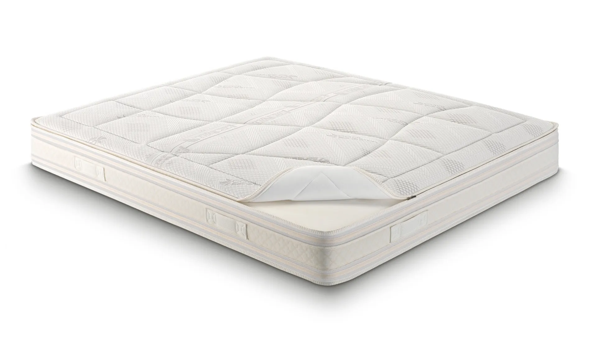 The smooth contact surface in 3 cm Water Foam, flexible and breathable, provides a balanced support to the body during the rest.  The double perimeter reinforcing steel plate promotes the stability of the structure and ensures the comfort of the mattress over time.  The density of the springs in the structure, equal to 520 to m2, ensures an anatomically correct, rigid and flexible support in the right places.  The sprinkling with differentiated, pocketed and independent zones, adapts to the body in a personalized way, ensuring comfort and correct support.  Perimeter structure in Water Foam, which guarantees strength and indeformability to the mattress.