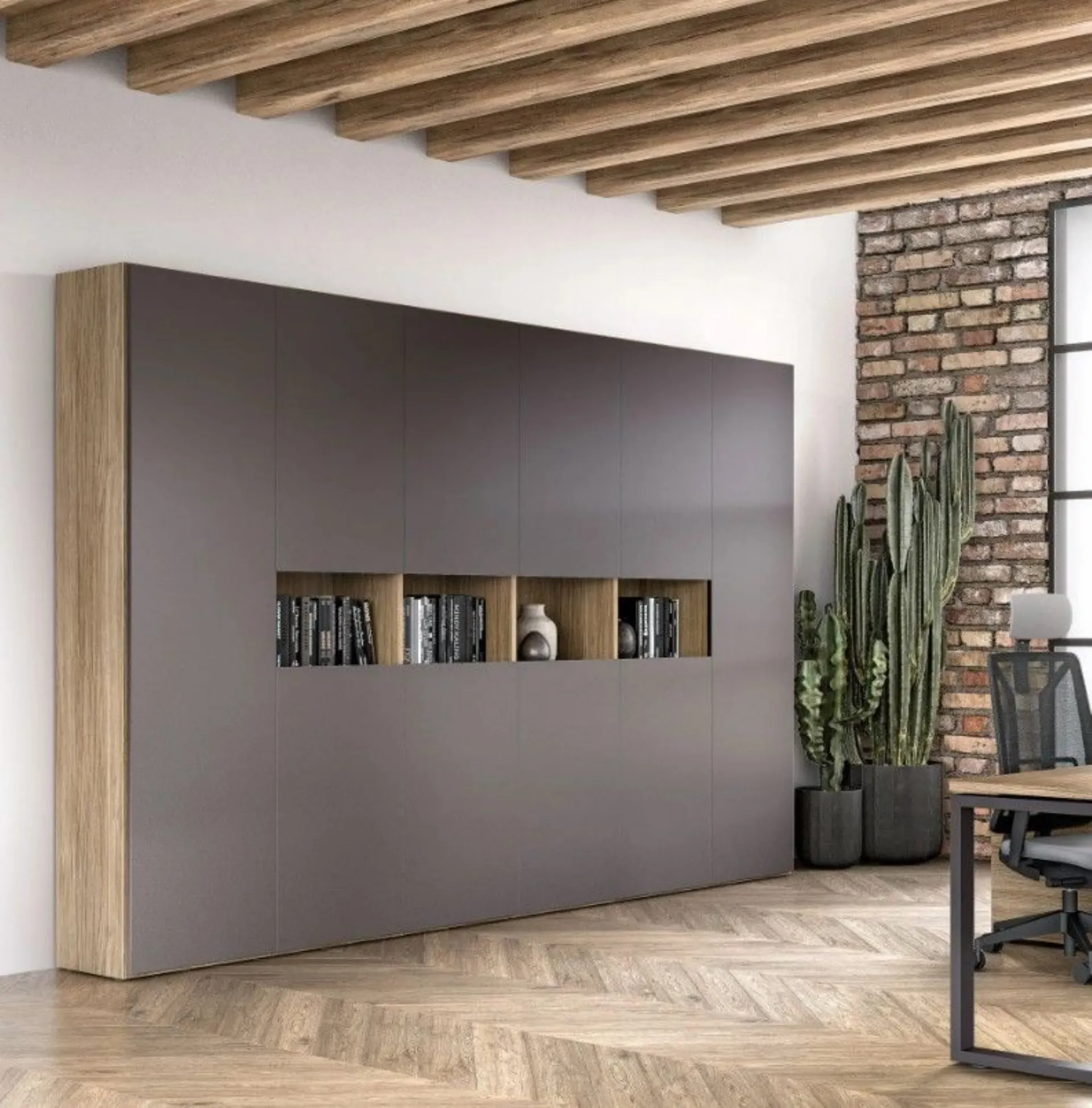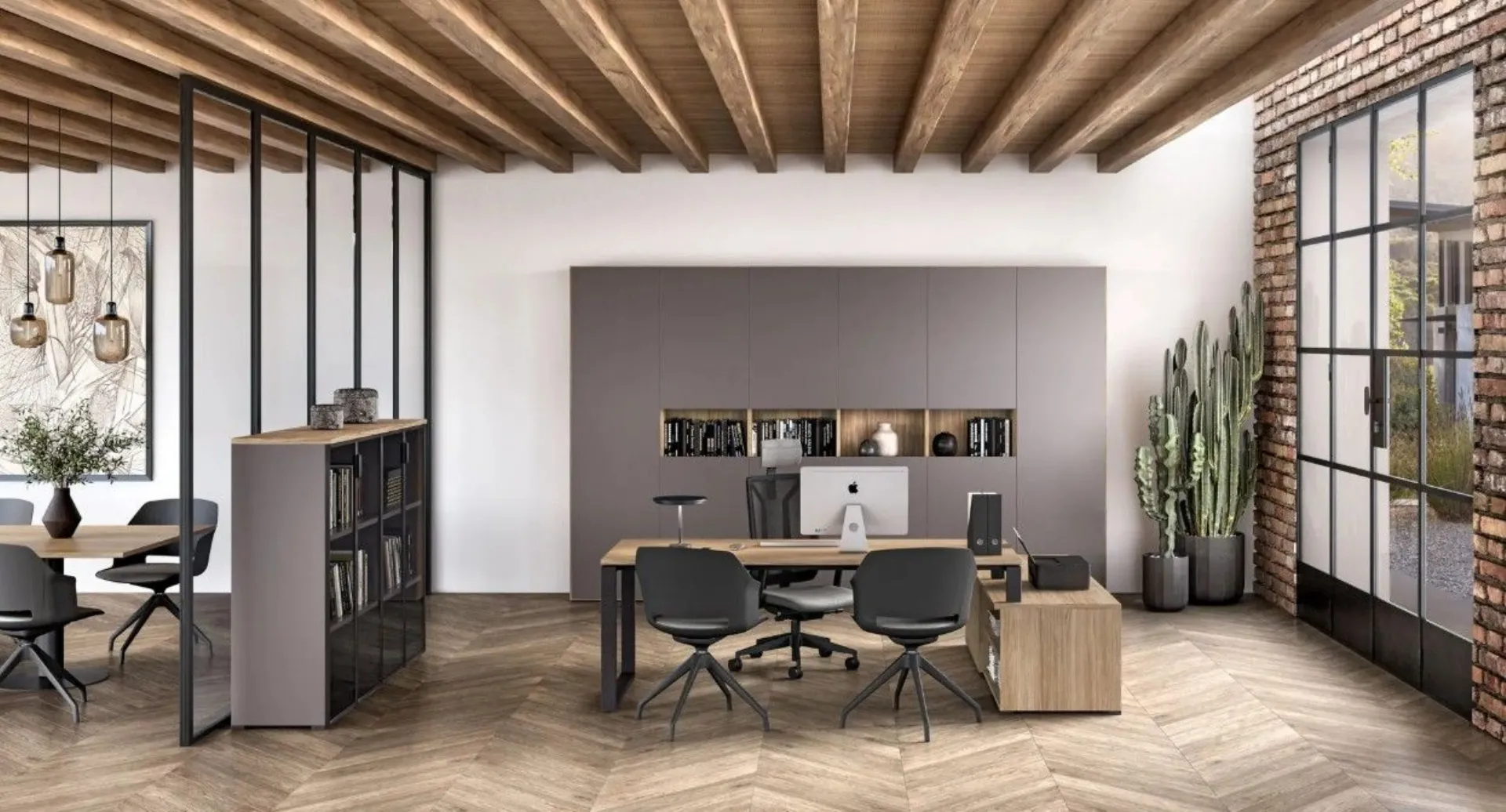 Our office furniture solutions combine Petra desks with Kobe Oak tops and Graphite finish, Direct ergonomic chairs, and coordinated Comfy seats to create modern, functional, and representative environments, promoting daily comfort and high productivity. Modular bookcases, completely customizable, available in Pearl, Gray, and Clay finishes, optimize document organization and harmonize the office style, strengthening the company identity and professional image in front of clients and collaborators. Customizable according to individual projects and available in various finishes. Request a quote via email or at 0424-383612.