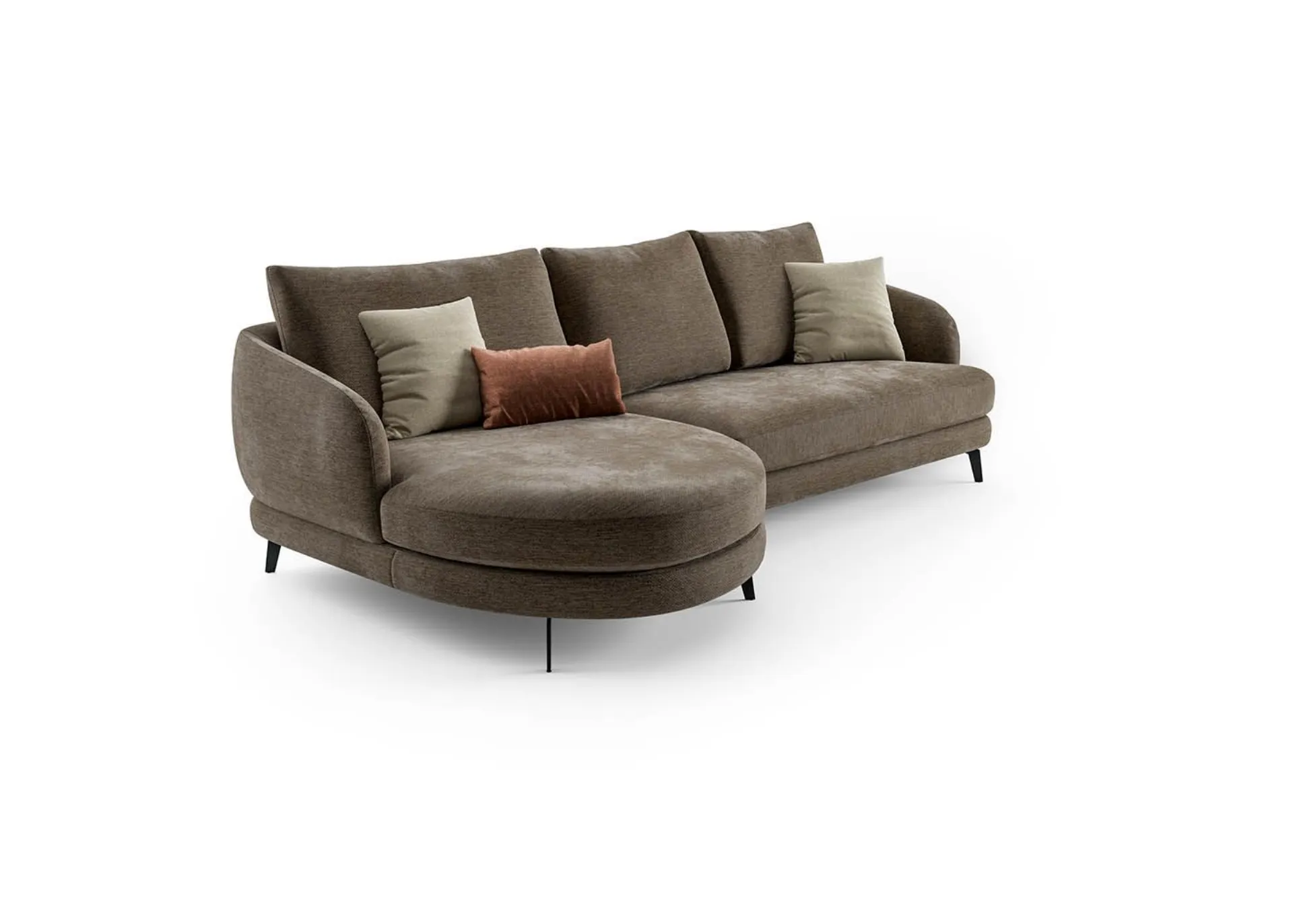 The soft lines of the structure create balanced and contemporary volumes, while the sleek profile given by the design of the high metal feet lightens the space, transforming the sofa into an elegant architectural element suitable for both modern and more classical living rooms.